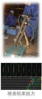 腐食等が存在した場合に起こる材料の磁気特性の変化を渦流センサーで検出するもので、配管全面の減肉状況を高速で把握することが可能です。